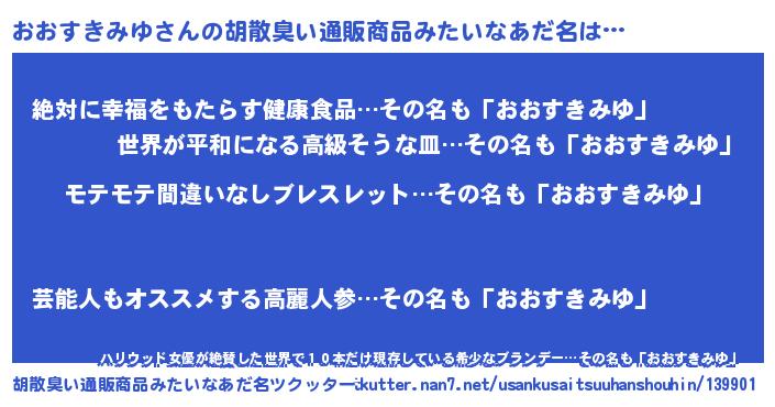 | ヘコむあだ名 | 『おおにー』『おおすきみゆ(苦笑)』 |