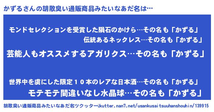 | 意味不明あだ名 | 『自称かずる』『眠気覚ましガムかずる味』 |