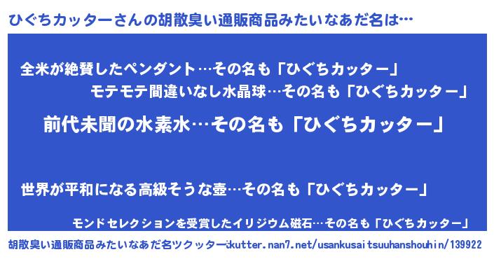 | 意味不明あだ名 | 『永久保存ひぐちカッター』 |