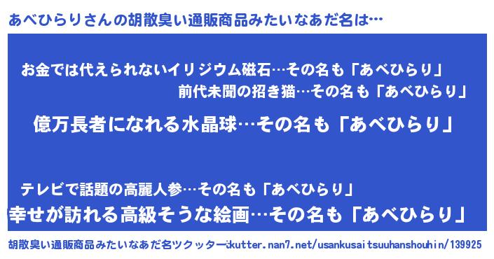ヘコむあだ名 | 『あべにゅー』『酢こんぶ』『あべを』 |