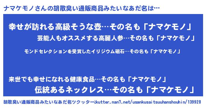 | 男性向けラノベタイトル風あだ名 | 『ノーゲーム・ノーナマケモノ』 |