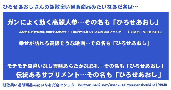 | ヒーロー風カッコイイあだ名 | 『ウルトラひろせあおしマン』 |