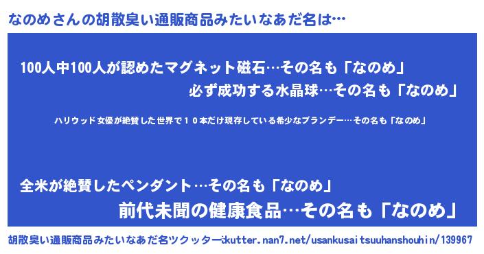 | ヘコむあだ名 | 『なのめ(遠い目)』『なのにー』 |
