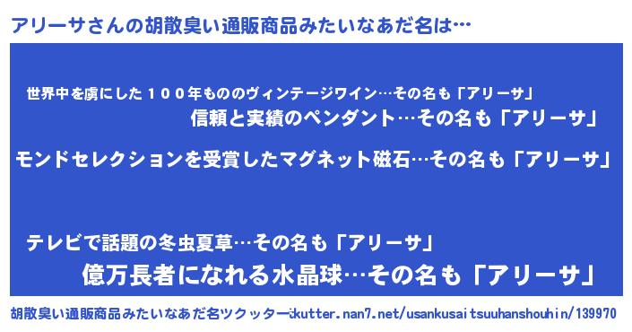 | ヒーロー風カッコイイあだ名 | 『天空の使者アリーサ』『仮面アリダー』 |