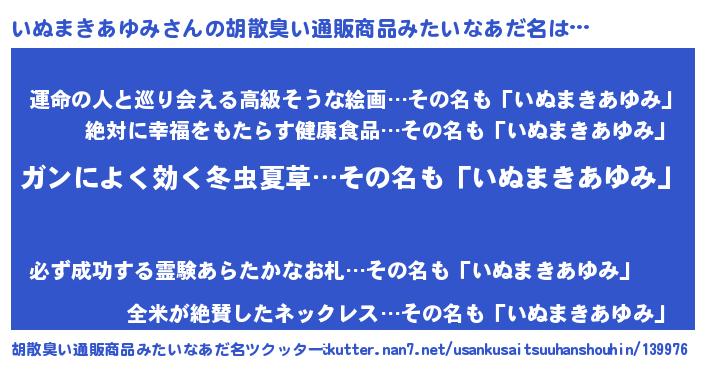 | 意味不明あだ名 | 『自称いぬまきあゆみ』 |