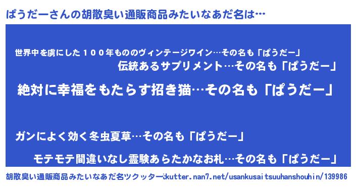| ヘコむあだ名 | 『ぱうだー(笑)』『ぱうふぇ~』 |