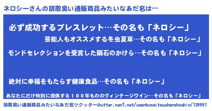 | ヘコむあだ名 | 『ネロっふぃ~』『ネロシー(笑)』 |