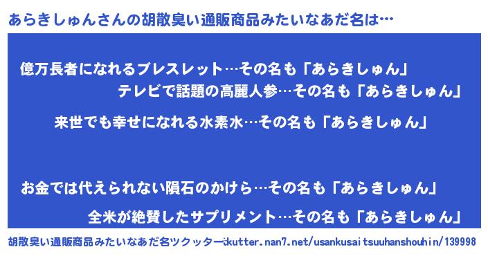 | 意味不明あだ名 | 『永久保存あらきしゅん』 |