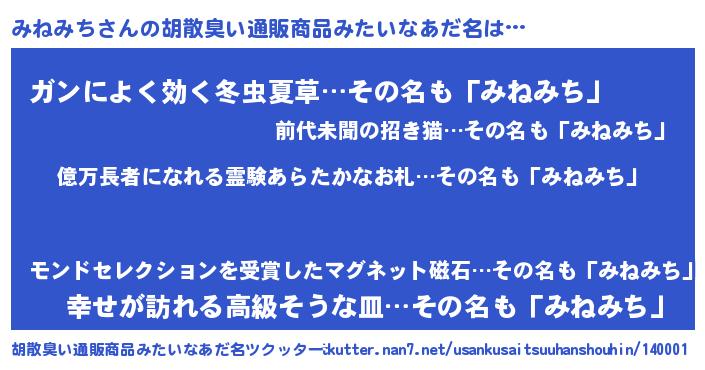 | 男性向けラノベタイトル風あだ名 | 『ミネミチアートオンライン』 |