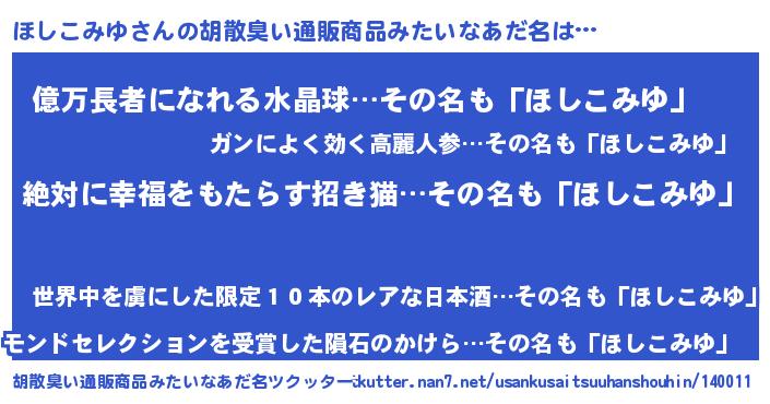 | ヘコむあだ名 | 『ほしこみゆ(笑)』『ほしもー』 |