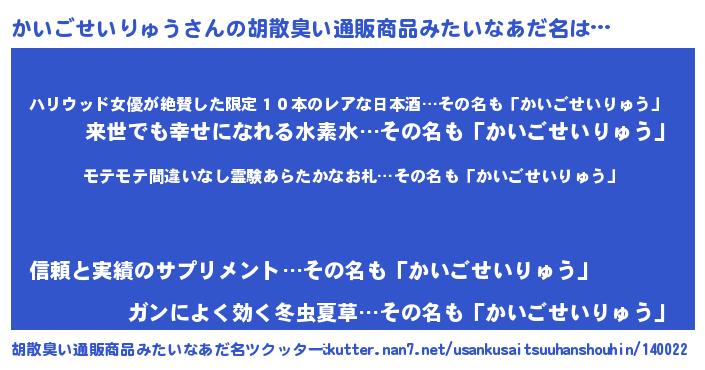 | ヘコむあだ名 | 『かいもー』『かいごせいりゅう(笑)』 |
