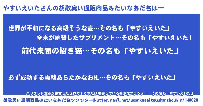 | ヘコむあだ名 | 『やすいえいた(笑)』『なまこ酢』 |