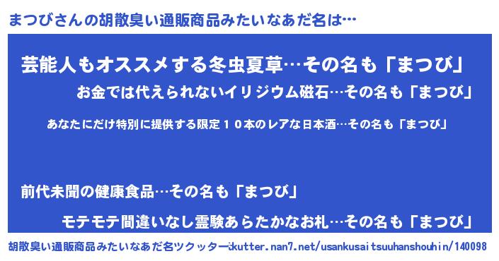 | 意味不明あだ名 | 『住所不定無職まつび(56歳)』『自称まつび』 |
