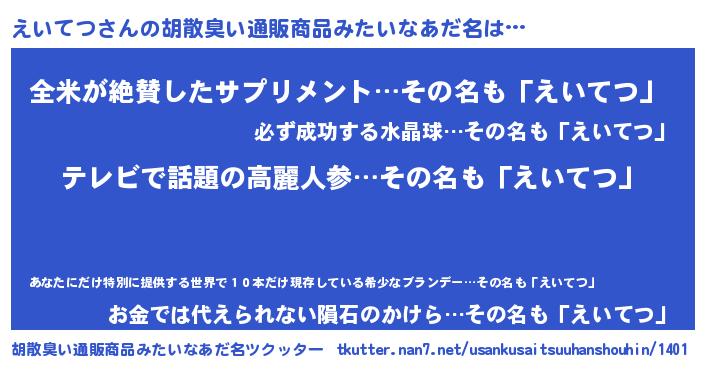 | 欧米人風あだ名 | 『トリンドルえいてつ』 |