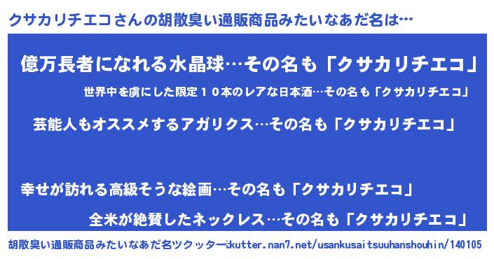| 意味不明あだ名 | 『自称クサカリチエコ』 |