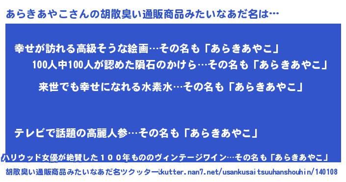 | 意味不明あだ名 | 『永久保存あらきあやこ』 |