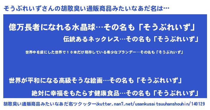 | ヘコむあだ名 | 『そうっふぃ~』『そうぶれいず(笑)』 |