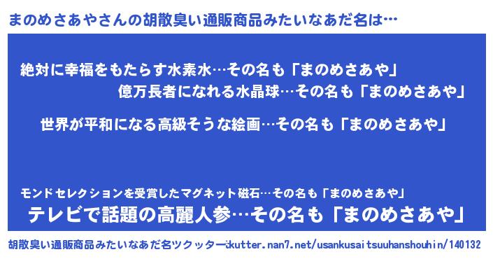| 欧米人風あだ名 | 『まのめさあやクリステル』 |