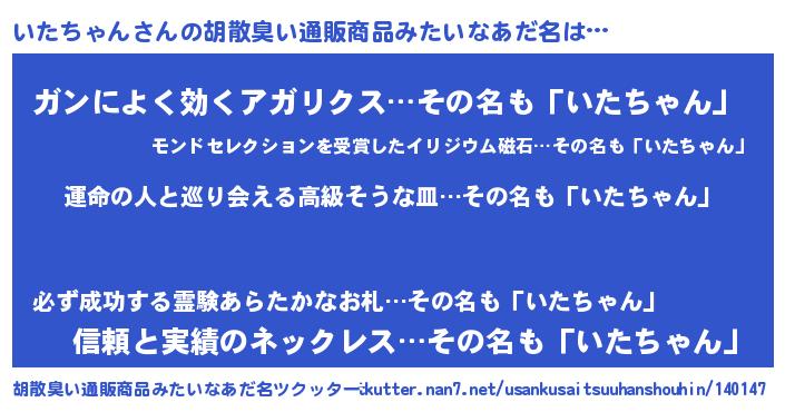 | 意味不明あだ名 | 『いたちゃんフォーエバー』 |