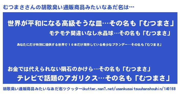 | 意味不明あだ名 | 『住所不定無職むつまさ(98歳)』 |