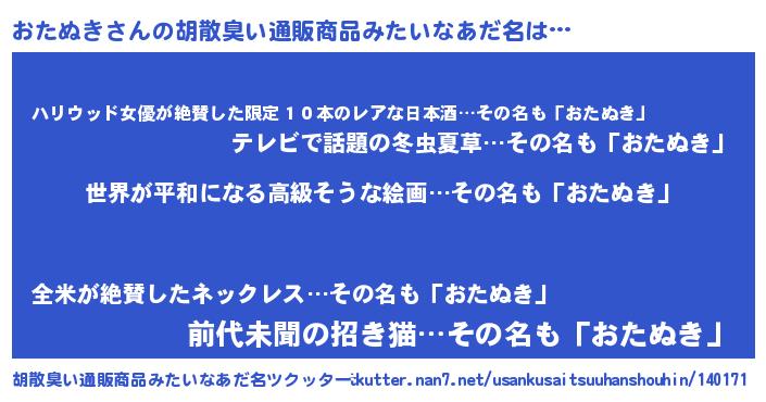 | 意味不明あだ名 | 『おたぬきフォーエバー』『自称おたぬき』 |