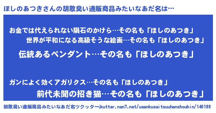 | 意味不明あだ名 | 『とにかく怪しいほしのあつき』 |