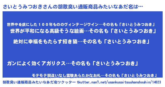 さいとうみつおきさんの胡散臭い通販商品みたいなあだ名をツクッター!