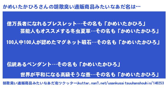 | ヒーロー風カッコイイあだ名 | 『友情の使者かめいたかひろ』 |