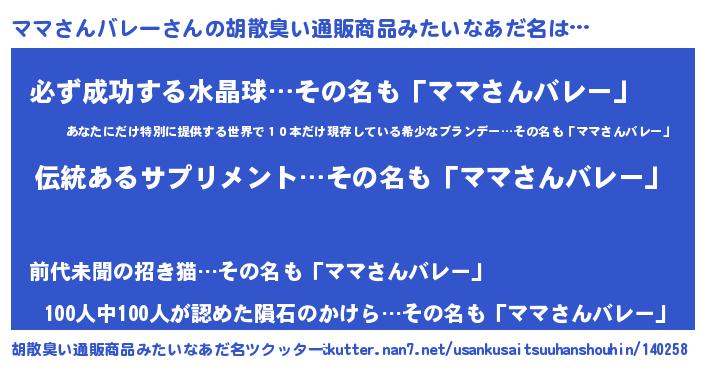 | 欧米人風あだ名 | 『ウサインママさんバレー』 |