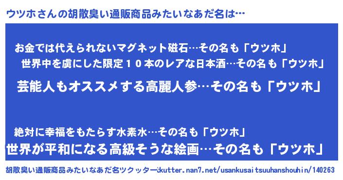 | ヒーロー風カッコイイあだ名 | 『究極戦士ウツホ』『慈愛の使者ウツホ』 |