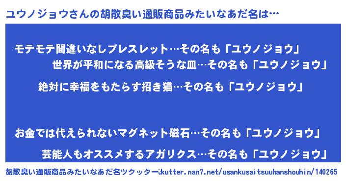 | ヘコむあだ名 | 『ユウノジョウ(小並感)』『ユウにー』 |
