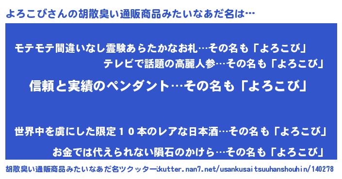 | 恥ずかしいあだ名 | 『ヨロリンリン』『プリティーよろこび』 |