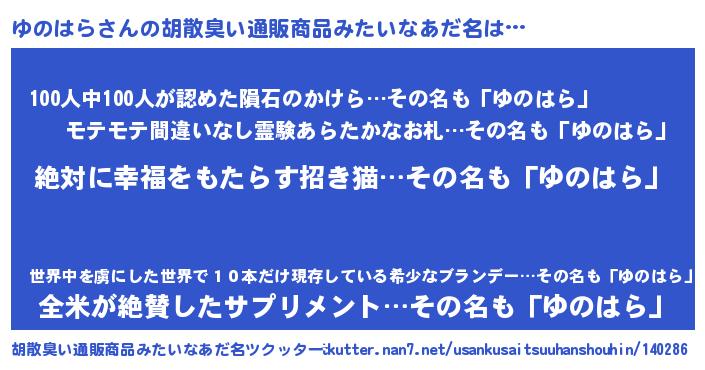 | ヘコむあだ名 | 『ゆのはら(笑)』『ゆのお』 |