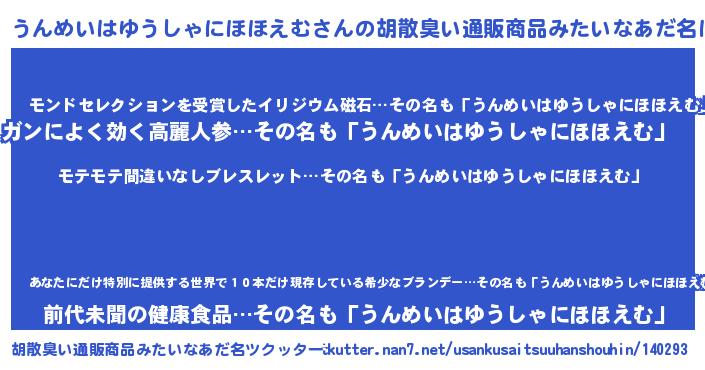 | ヒーロー風カッコイイあだ名 | 『スーパーウンメイハユウシャニホホエム』 |