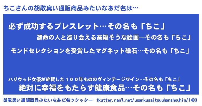 | ヘコむあだ名 | 『ちこにー』『ちこ(震え声)』 |