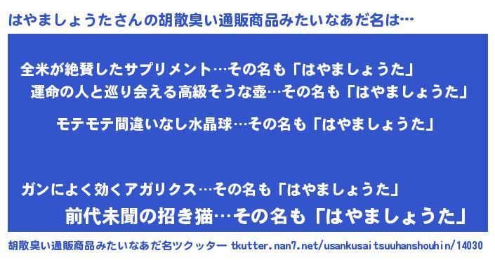 | 意味不明あだ名 | 『ペロリンはやましょうた』 |