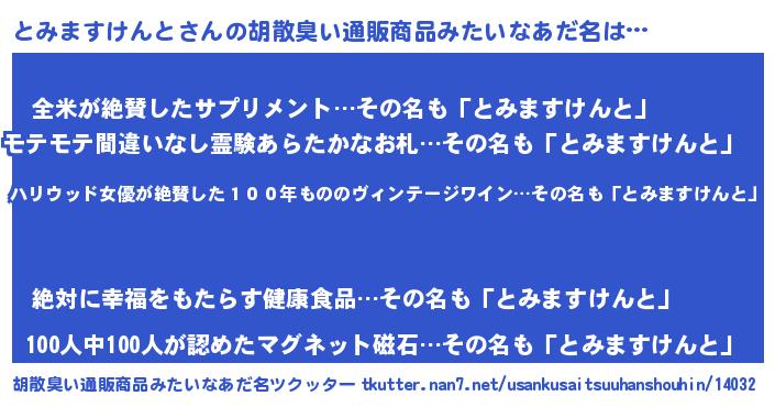 とみますけんとさんの胡散臭い通販商品みたいなあだ名をツクッター!