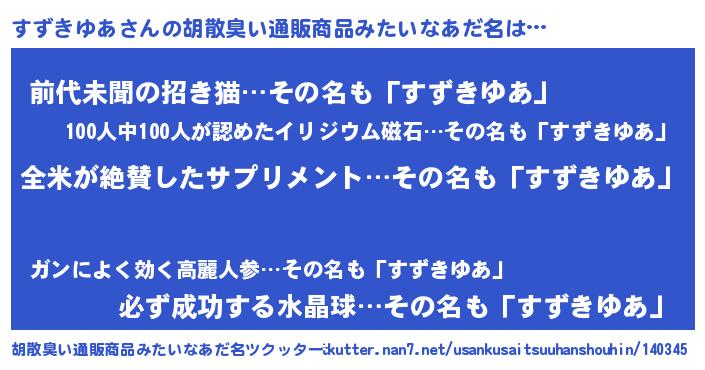 | ヘコむあだ名 | 『すずお』『すずきゆあ(震え声)』 |