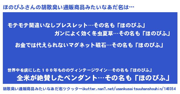 | 男性向けラノベタイトル風あだ名 | 『ノーゲーム・ノーホノピフ』 |