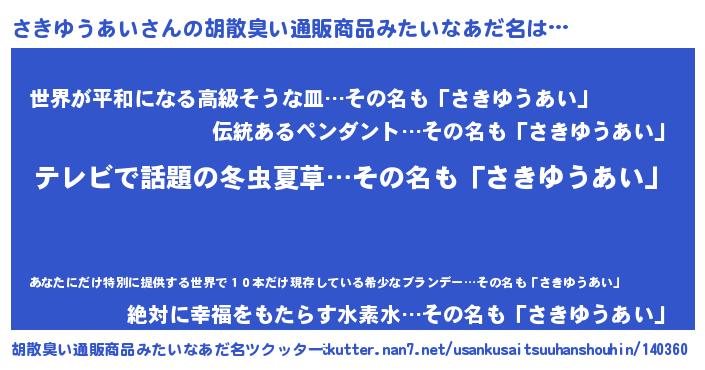 | 意味不明あだ名 | 『自称さきゆうあい』 |