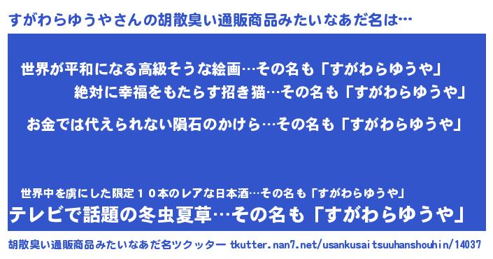 | ヘコむあだ名 | 『なまこ酢』『すがわらゆうや(小並感)』 |