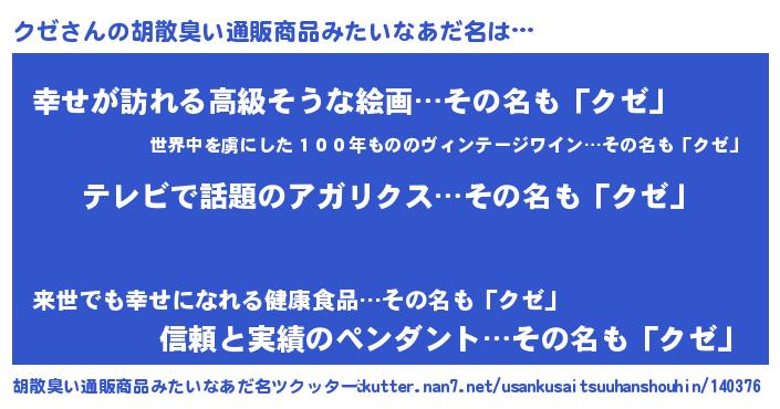 | 意味不明あだ名 | 『自称クゼ』『めかぶ科クゼ属』 |