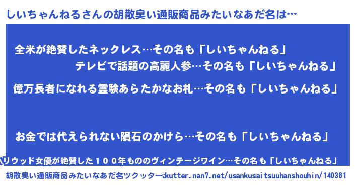 | 意味不明あだ名 | 『ペロリンしいちゃんねる』 |