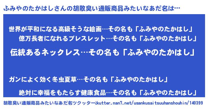 | ポケモン風あだ名 | 『ヒフミヤノタカハシ』『フミヤダネ』 |