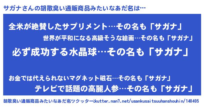 | ヘコむあだ名 | 『サガふぇ~』『サガを』『豆乳』 |