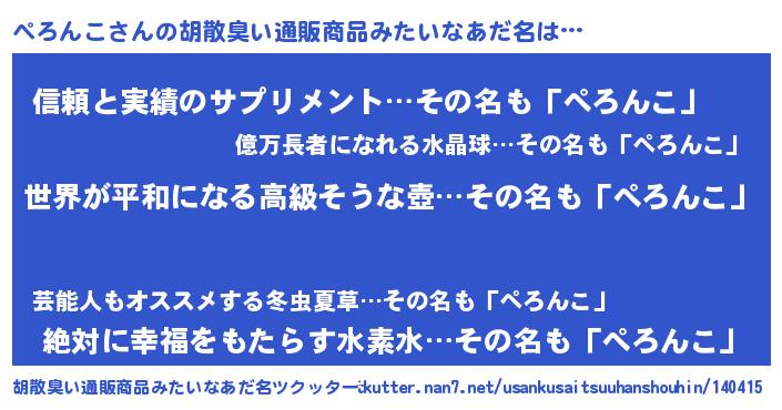 | ヒーロー風カッコイイあだ名 | 『ウルトラぺろんこマン』『魔戒騎士ペロ』 |