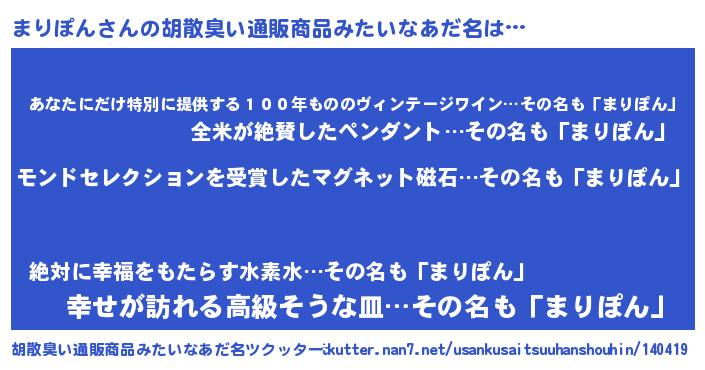 まりぽんさんの胡散臭い通販商品みたいなあだ名をツクッター!