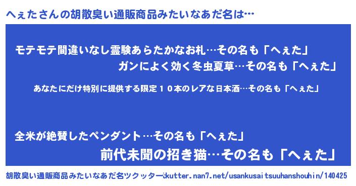 | ヒーロー風カッコイイあだ名 | 『仮面ヘェダー』『スーパーヘェタ』 |