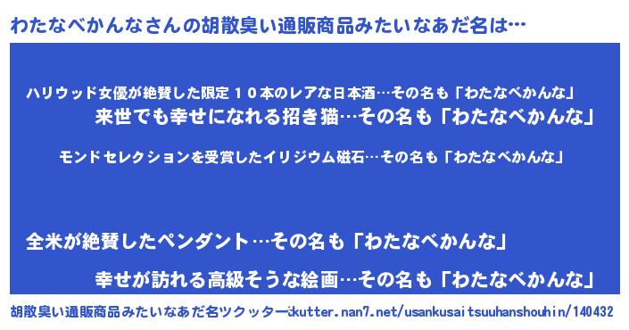 | 意味不明あだ名 | 『眠気覚ましガムわたなべかんな味』 |