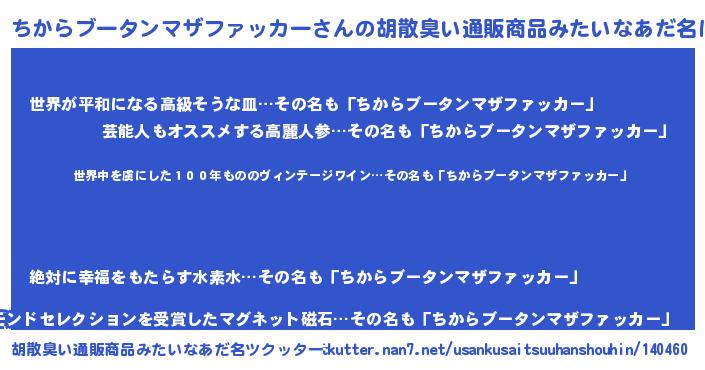| 欧米人風あだ名 | 『ダレノガレちからブータンマザファッカー』 |